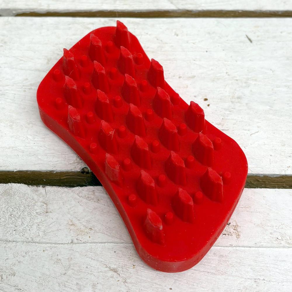 Der Gummistriegel besteht aus 100% lebensmittelechtem Silikon und ist bis 120 Grad waschbar, das heißt, Du kannst ihn auch sterilisieren.